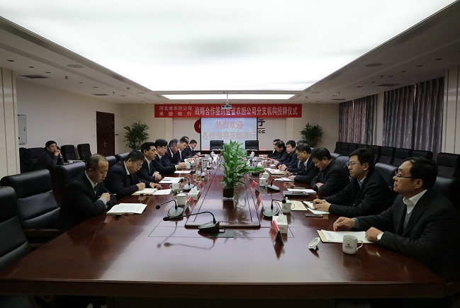12月27日上午,河北農(nóng)擔(dān)公司與承德銀行戰(zhàn)略合作簽約暨農(nóng)擔(dān)公司分支機(jī)構(gòu)授牌儀式在承德市舉行。承德市財(cái)政局局長欒志宏,河北農(nóng)擔(dān)公司董事長、總經(jīng)理馮志強(qiáng),承德銀行董事長王振廷出席儀式并分別致辭。儀式上,河北農(nóng)擔(dān)公司與承德銀行簽署了戰(zhàn)略合作協(xié)議,馮志強(qiáng)董事長為承德市13個農(nóng)擔(dān)公司代辦處進(jìn)行集中授牌。