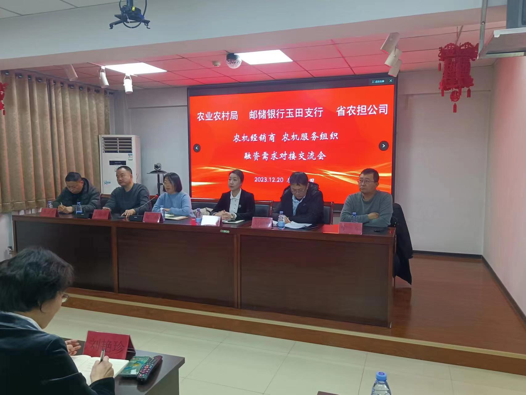 12月20日,省農(nóng)擔(dān)公司唐山辦事處聯(lián)合唐山市、玉田縣農(nóng)機主管部門、玉田縣郵儲銀行,在玉田縣舉辦轄區(qū)內(nèi)首場政策性農(nóng)機擔(dān)保貸款對接會。玉田縣農(nóng)機經(jīng)銷商(企)、農(nóng)機服務(wù)組織(以下簡稱“購機戶”)及其他農(nóng)業(yè)生產(chǎn)經(jīng)營主體共60人參加會議。